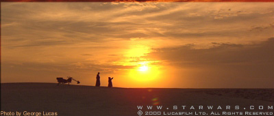 28 September - The official Star Wars site posted it's latest Select picture (see below). It portrays a deformed picture taken of the recently rebuilt Lars' Homestead set on the Chott el-Jerid.